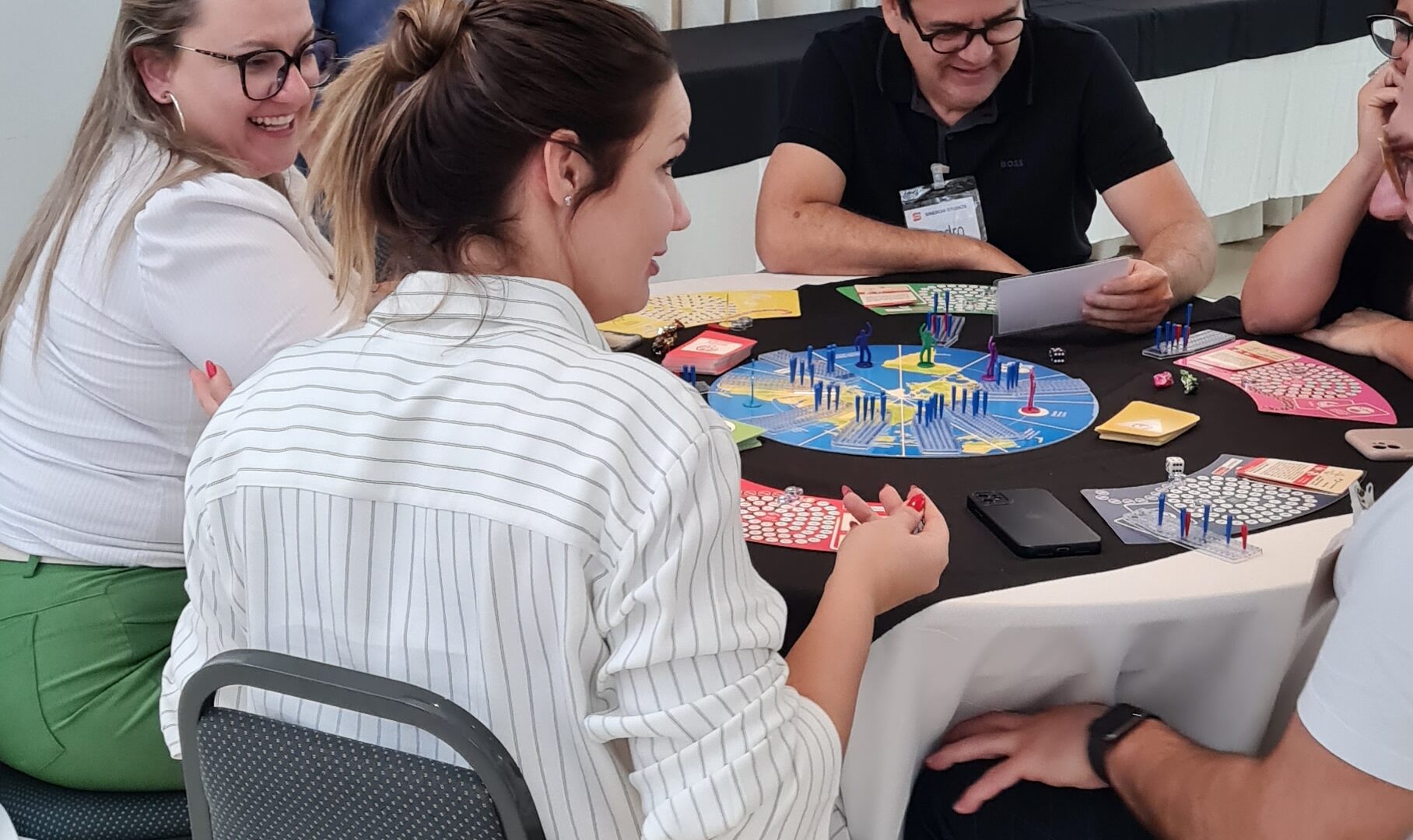Nosso tabuleiro simula a dinâmica do mundo dos negócios e do universo empresarial em tempo real. Líderes e equipes vivenciam pressões por metas e lidam com oportunidades, desafios, conflitos e ameaças. Com Poder, tomam decisões e negociam — exercitando e aprendendo uma nova mentalidade para soluções no dia a dia.